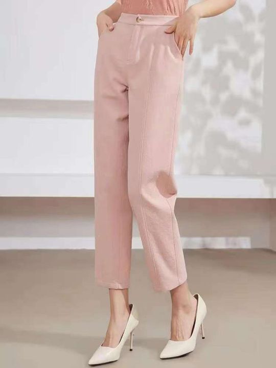 女夏季薄款高腰垂感新款粉色小个子束脚九分休闲西装裤,清凉垂顺,行走的“空调裤”,透气不透肉,快干不褪色,显高显瘦,亲肤舒适,全方位立体裁剪,任何身材都可以秀出大长腿,宽松版型,藏肉零束缚,提升曲线,笔挺裤脚,走路带风,穿出你的潮流感,选它,超低价,手慢️,100件起,分货11.8