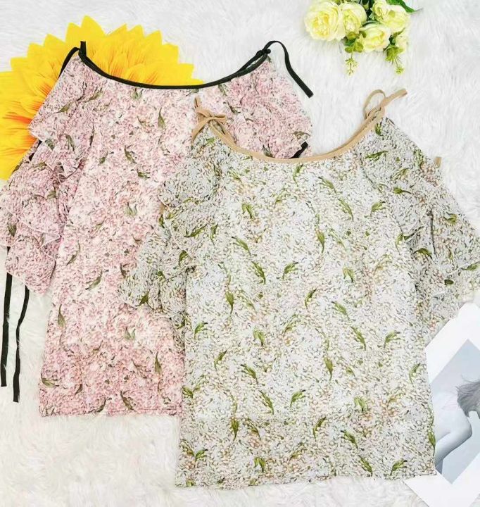 碎花露肩雪纺衫短袖宽松潮流休闲洋气上衣一字衬衣超仙T恤,面料舒适透气,一字肩优雅大方展现气质[色],碎花浪漫感修饰身形[强],视觉显瘦,风格多样且百搭,选它[机智],准没错!分货8.8