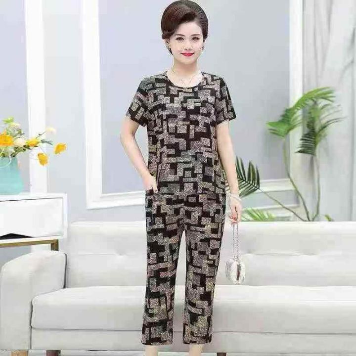 全清价5.9元妈妈夏装套装冰丝亲肤凉快舒服可外穿中老年人女款上衣五分裤两...