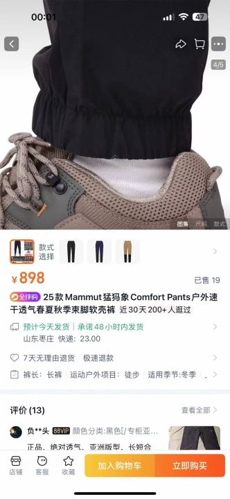 25款Mammut猛犸象Comfort Pants秋季户外速干透气梭织束脚锦纶高端三防长裤 防水、防油、防污 黑色 灰色 最后100条 清货