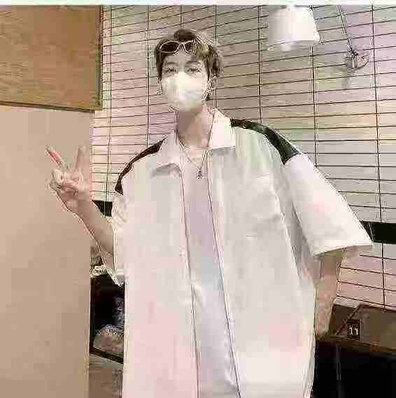 衬衫男夏季小众设计感撞色短袖衬衣美式高街潮牌宽松休闲外套数量:438件...