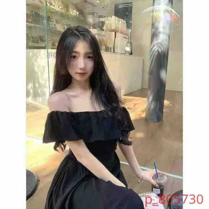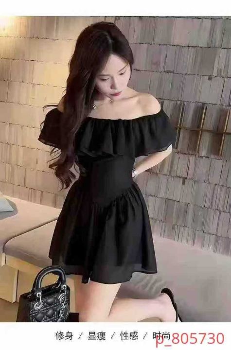 女士黑色辣妹高端雪纺收腰显瘦气质仙女装连衣裙,每条...