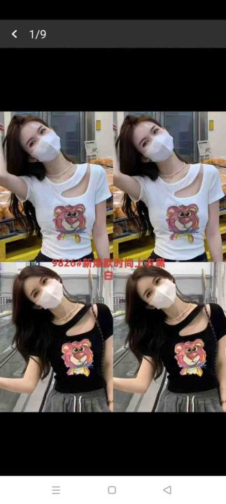 5760件左右牛奶丝双面磨毛靓妹短款夏季短袖小衫,图案多样,独立拉链包装,...