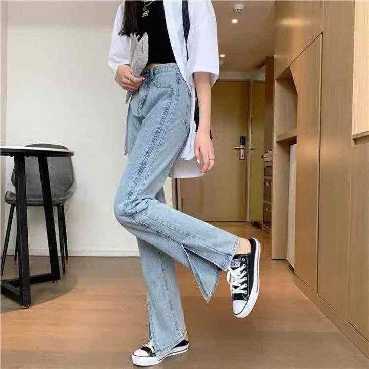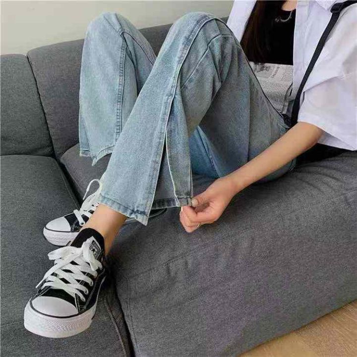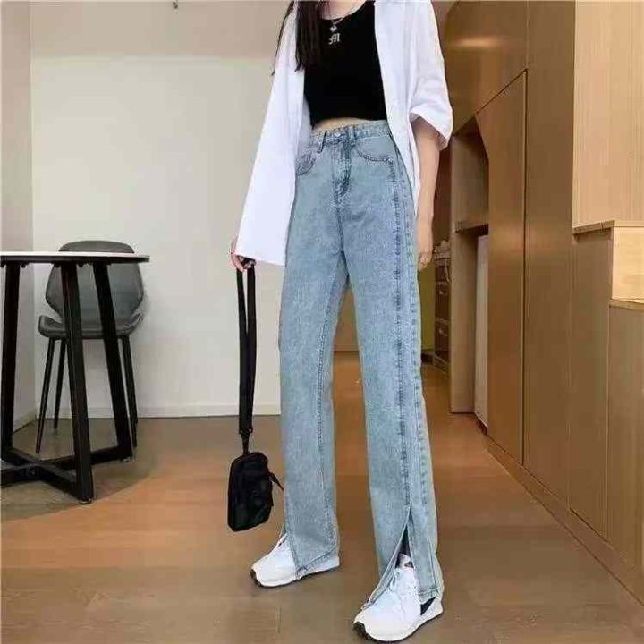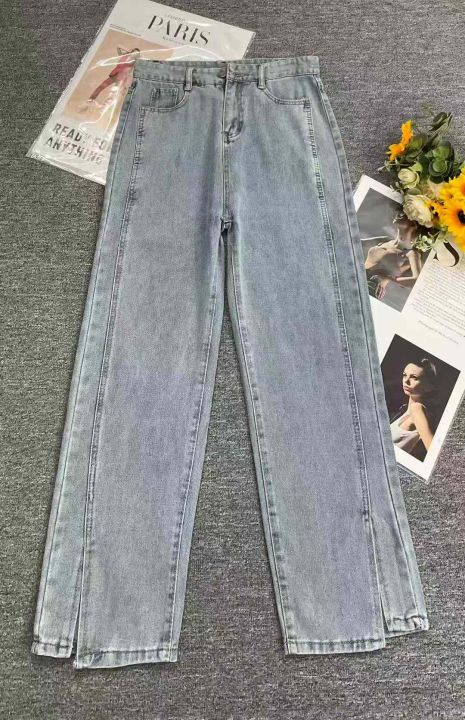 秋季新款洗水棉女装直筒开叉牛仔裤,独立包装带吊牌,...