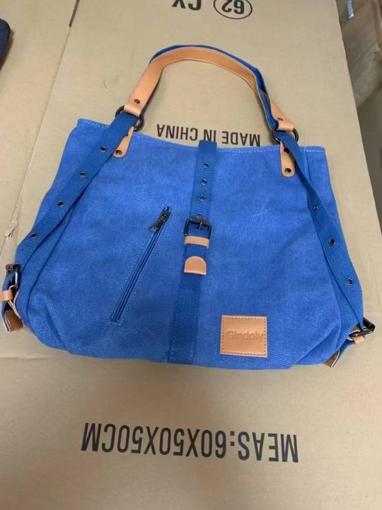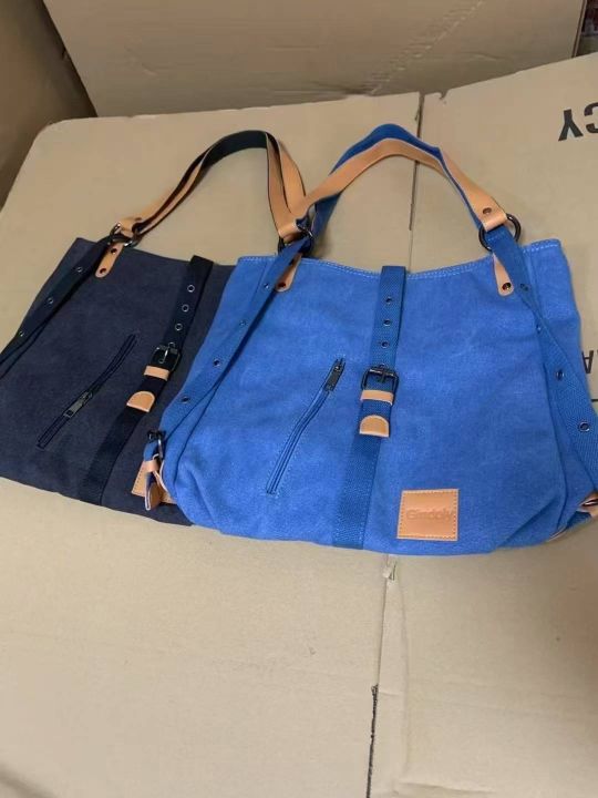 2025年欧美时尚新款单肩包,可双肩背斜挎Gindoly时尚帆布包,外观独特,蓝色与卡其色搭配,容量大,设计感强。带子可调节,携带方便,有拉链和扣设计,收纳更实用。390pcs全新未用,保证品质。尺寸适中,适合日常使用或短途出行。