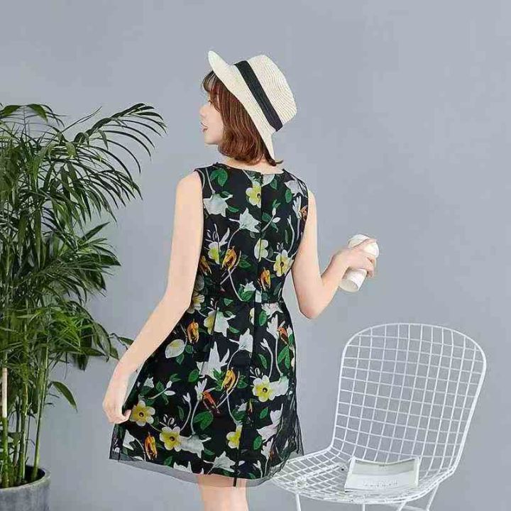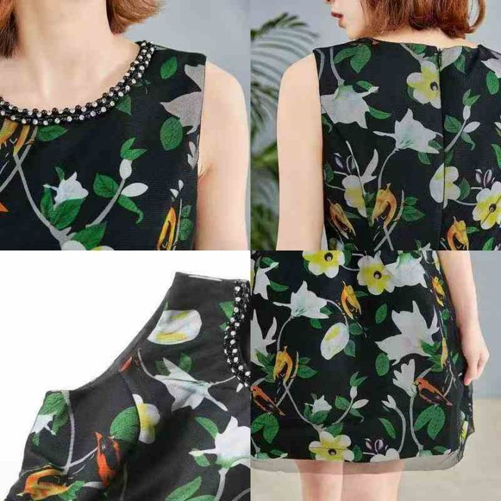 新款时尚显瘦圆领裙子钉珠气质收腰无袖网纱连衣裙2024...