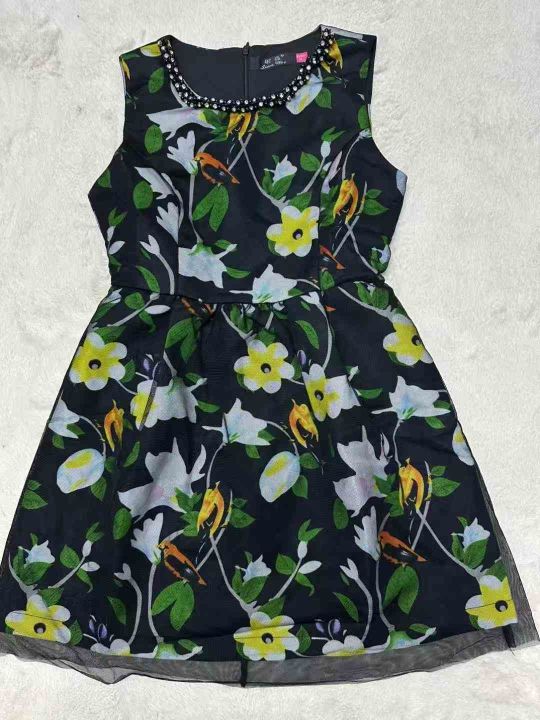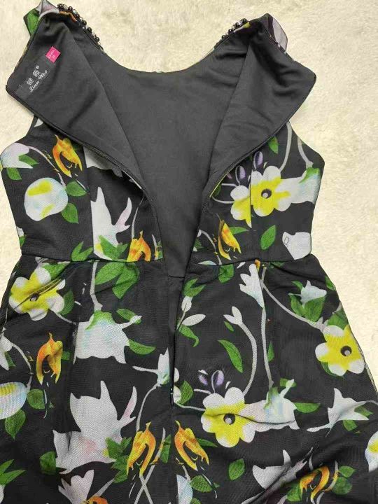 新款时尚显瘦圆领裙子钉珠气质收腰无袖网纱连衣裙2024年。