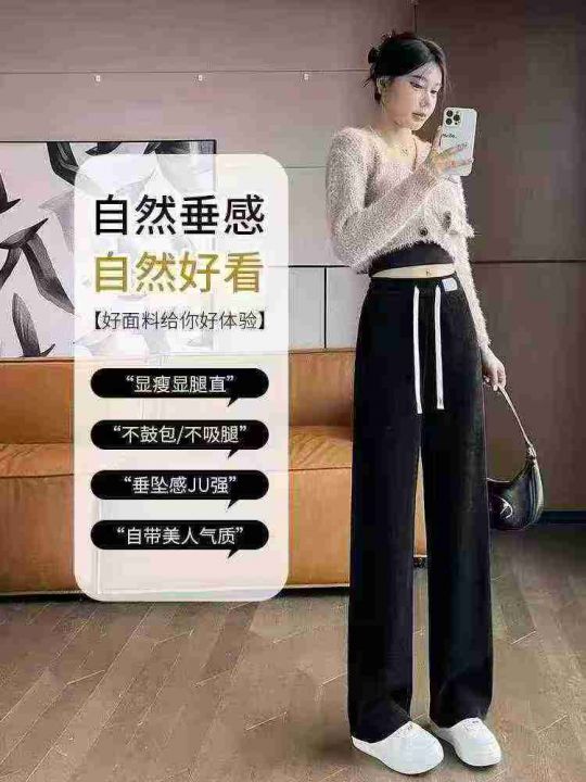 秋冬黑色运动加绒直筒休闲裤女,单款单色,面料厚实有质感,有独立包装,数...