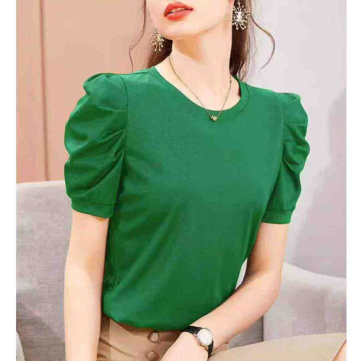 3.5清工厂回收227件时尚褶皱设计泡泡袖纯色短袖T恤女...