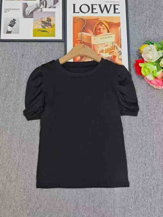 工厂回收227件时尚褶皱设计泡泡袖纯色短袖T恤女,码数S-2XL。版型质量很好,面料有弹性,百搭不挑人,全部独立包装。