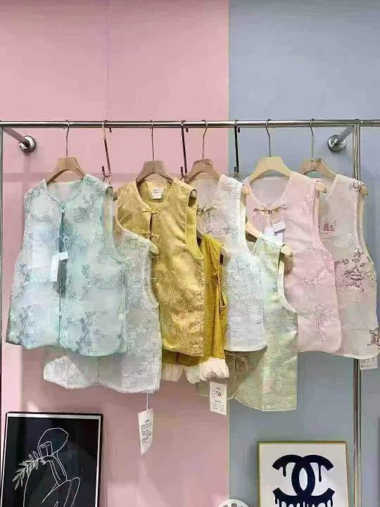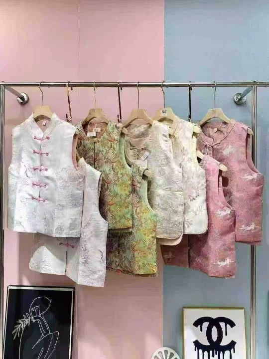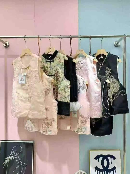 新中式盘扣金丝线刺绣马甲背心外套女新款高级感国风马夹上衣一款两色,180件左右可分可清码数齐全