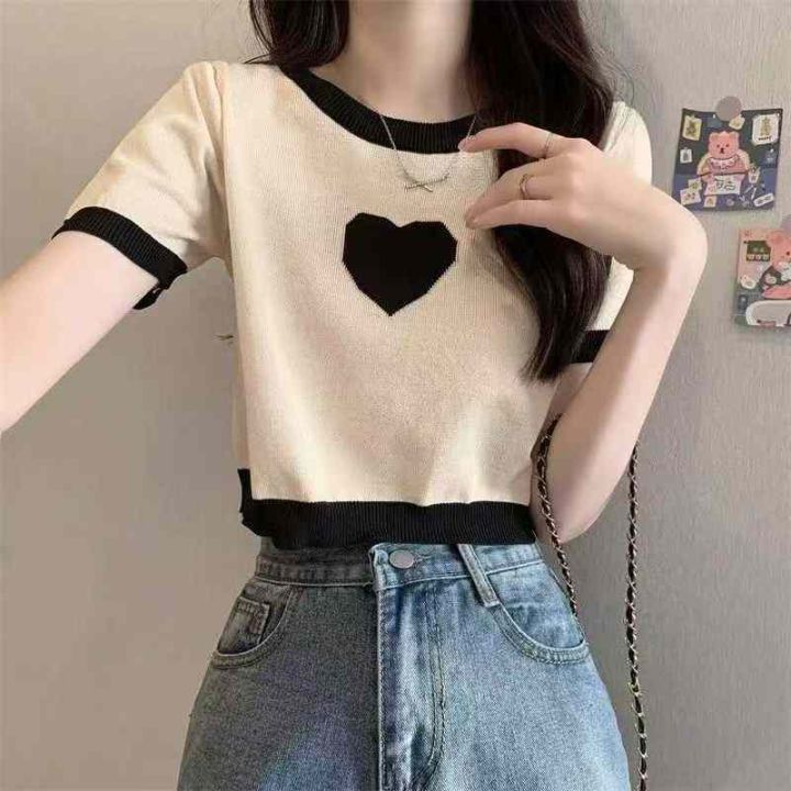 夏季新款设计感撞色爱心正肩甜辣宽松针织短袖,独立包装,均码面料柔软舒适透气,350件,全清6.9元超低价秒杀!分货加一!