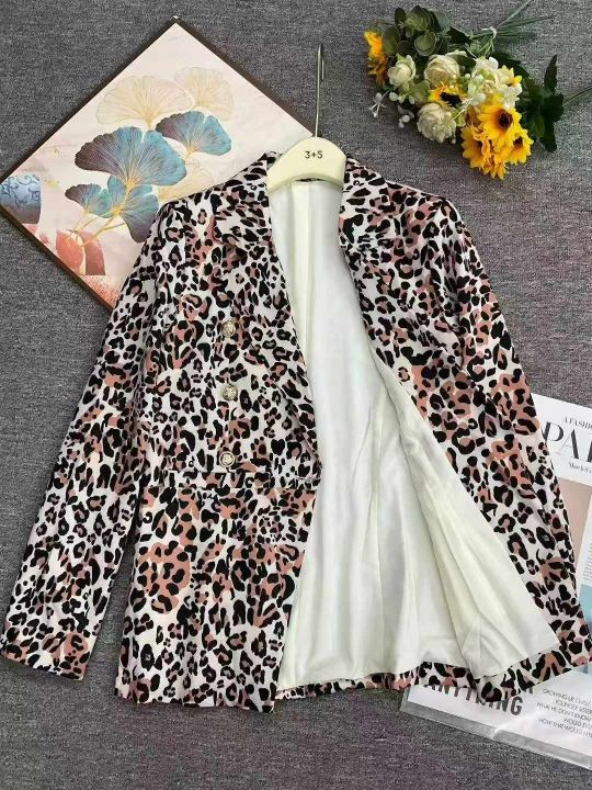 捡漏款,春秋新款翻领豹纹休闲气质长袖西装外套,独立...