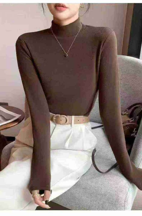 新款高领/半高领,金丝绒春秋冬季女加绒加厚打底衫内搭长袖t恤保暖上衣服,...