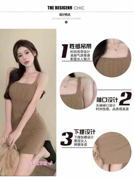 夏季新款纯欲风辣妹性感收腰显瘦仿雪尼尔针织包臀吊带连衣裙,独立包装,均码面料软糯舒适,215件,全清6.9元超低价秒杀!