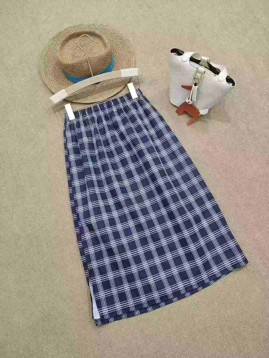 [月亮]:复古格子休闲半身裙