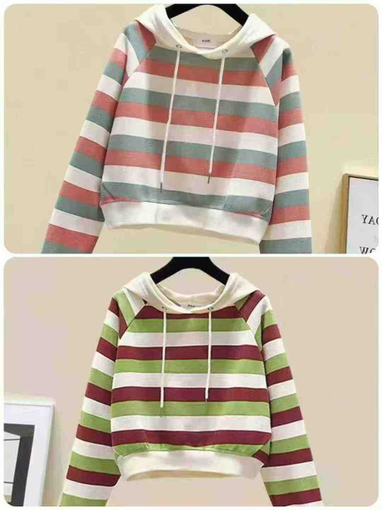 电商仓回收56件彩虹多巴胺条纹短款连帽卫衣女,码数S-XL。质量版型非常哇塞,上身舒服好看。全部独立包装。
