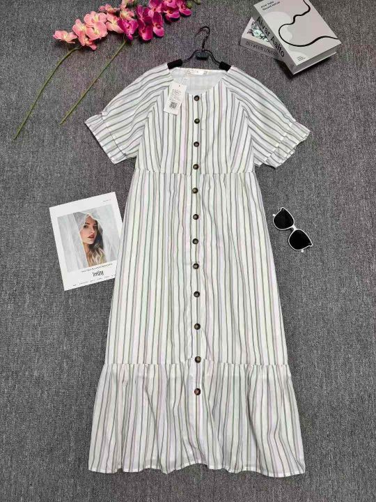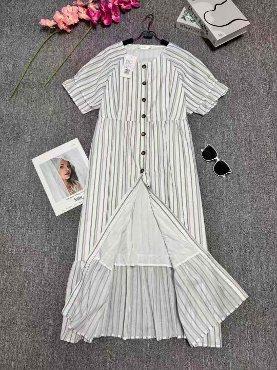 ⭐⭐120件法式复古条纹衬衫小众泡泡袖收腰显瘦鱼尾长裙连衣裙,码数SML,有内衬,品质好,独立包装带吊牌,全清13.8元!