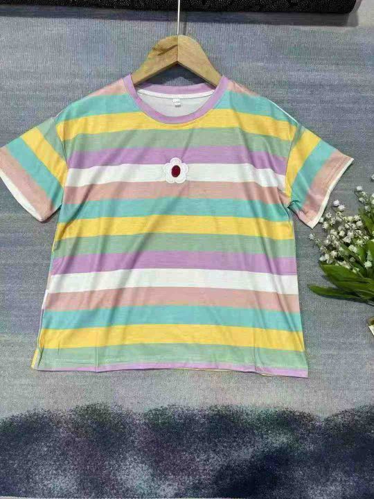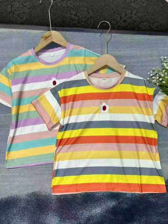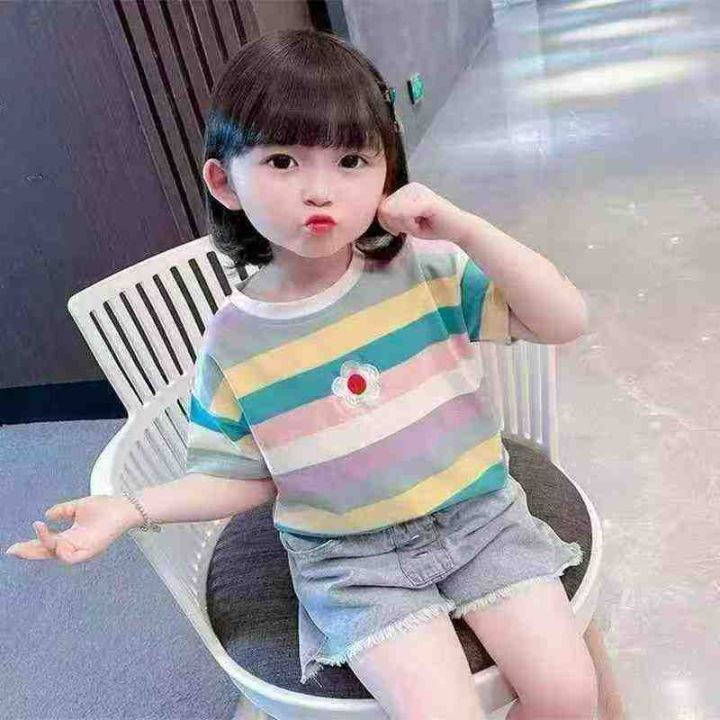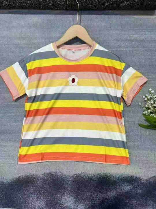 淘宝在售女童彩虹条纹短袖t恤,夏季中大童半袖体恤女...