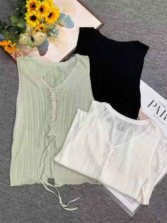 夏季新款设计感独特别致绑带薄款v领冰丝无袖针织衫,独立包装,均码面料软糯舒适弹力大,660件,全清4.9元超低价秒杀!分货加一!