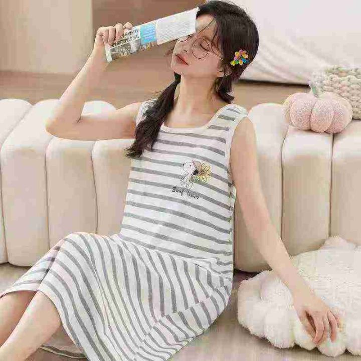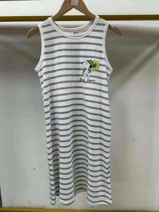 独立包装童装女生纯棉夏天条纹睡裙夏季宽松家居服加大码无袖背心长裙