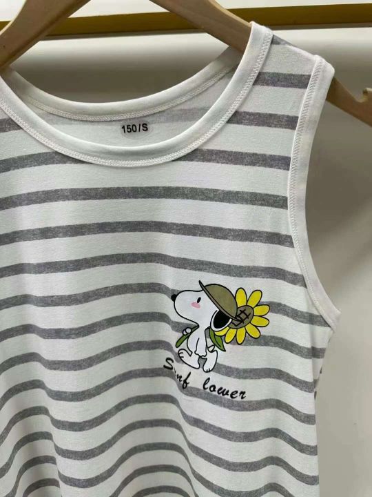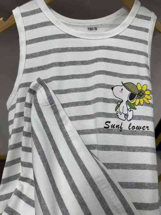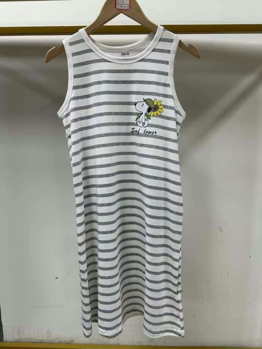 独立包装童装女生纯棉夏天条纹睡裙夏季宽松家居服加大码无袖背心长裙