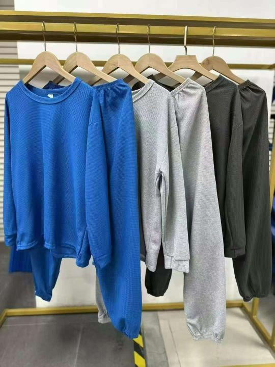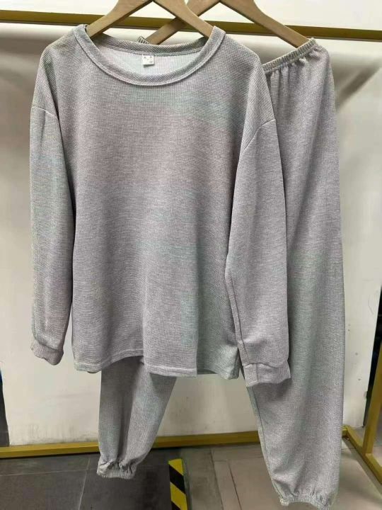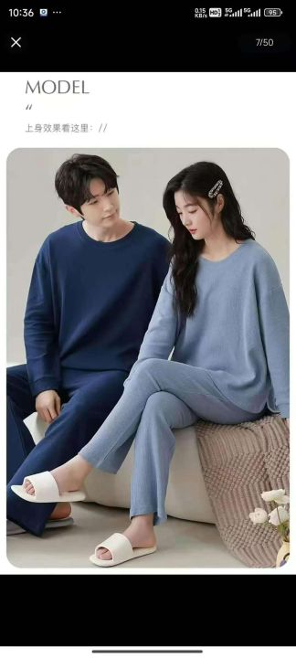 华夫格情侣长袖套装春秋季薄款休闲简约家居服100多套 码数M-2XL 全清价6.5元