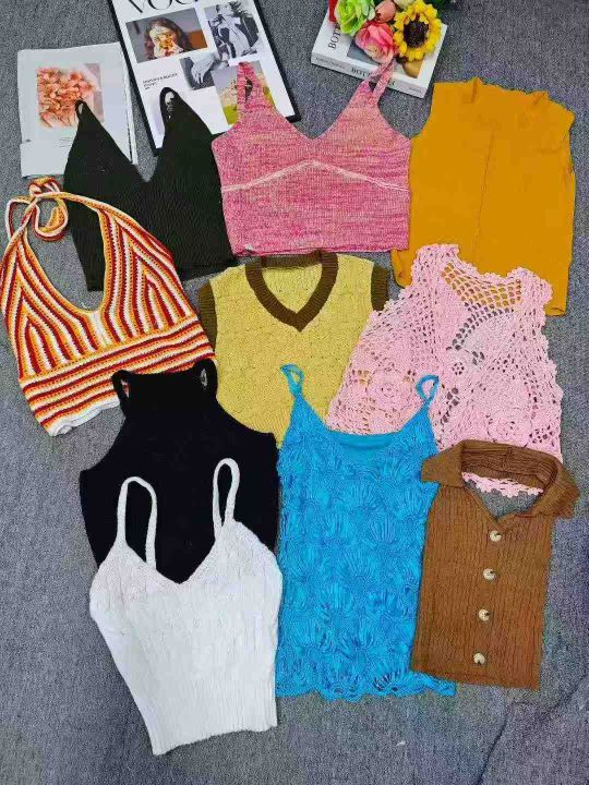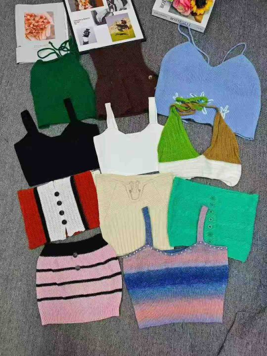 工厂回收1750件时尚甜美辣妹针织系列,码数S-XL。包括但不限于图片的款式,都是辣妹靓妹风格,款都很好看,货品干净,10件一包装。