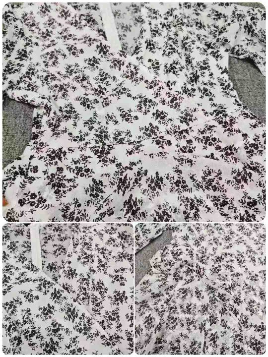 工厂回收1580件雪纺碎花连衣裤裙女,码数S-XL。版型面料都很好,带内衬安全裤,有染色(见细节图)不影响穿着,全部独立包装。