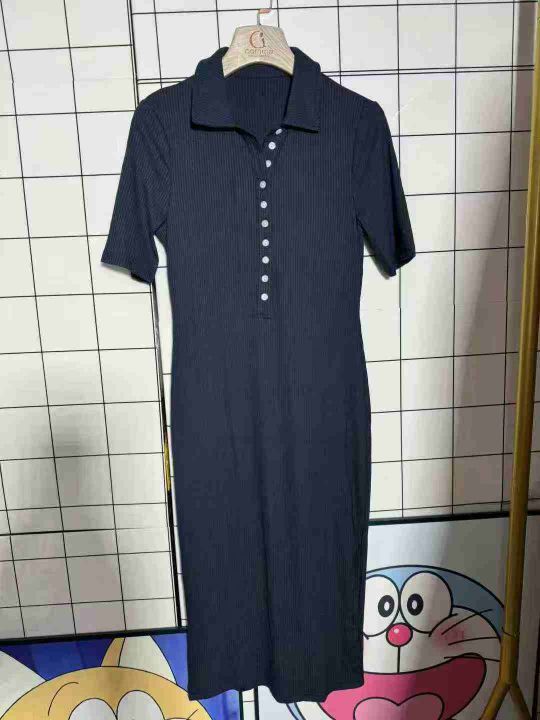 8.8清110件女polo领短袖针织裙收腰修身显瘦连衣裙女夏季气质包臀裙长裙 码...