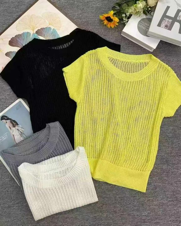 夏季新款净版简约镂空针织短袖T桖,独立包装,均码面料柔软舒适,140件,全清4.9元亏本处理!