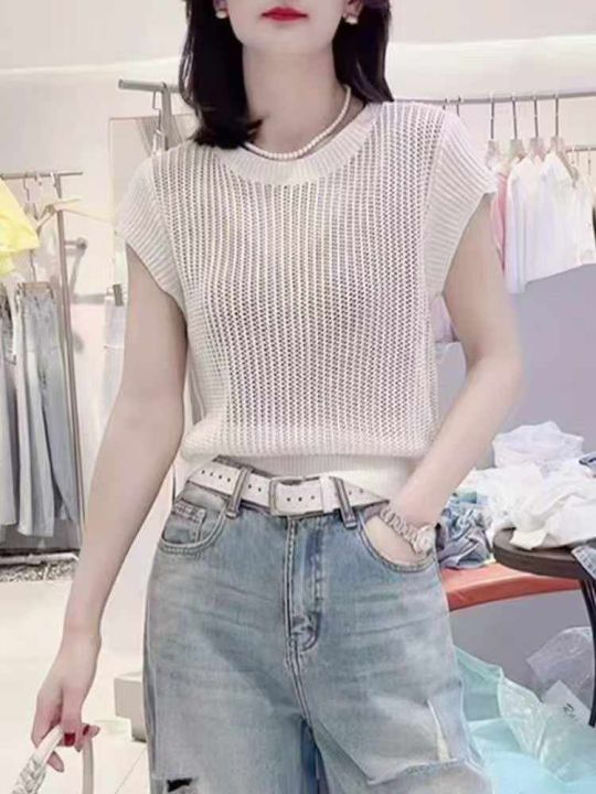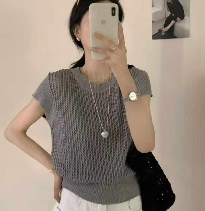夏季新款净版简约镂空针织短袖T桖,独立包装,均码面...