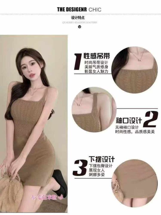 夏季新款纯欲风辣妹性感收腰显瘦仿雪尼尔针织包臀吊带连衣裙,独立包装,均码面料软糯舒适,213件,全清6.9元超低价秒杀!