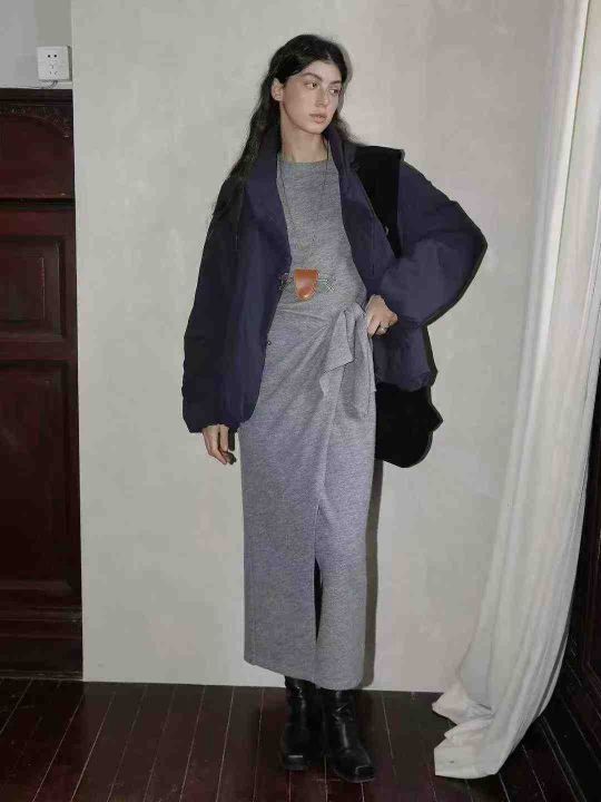 棉质裙女春秋中长款显瘦裙子韩版气质收腰长袖绑带连衣裙,面料厚实有重量,单款单色,1.2码,520件左右,8.8清,分货加1