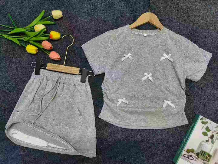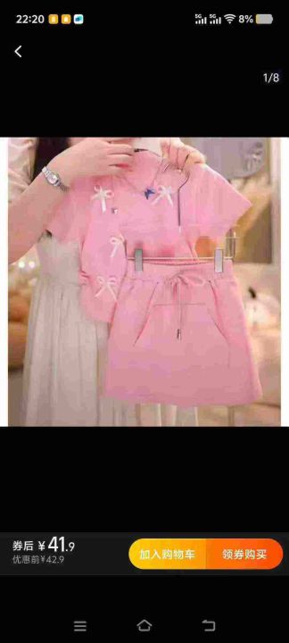 女童没计感时尚洋气蝴蝶结侧拉皱短袖加短裙两件套套装,85棉面料,335套,1-6码,独立包装,全清6.8元,分货+0.5