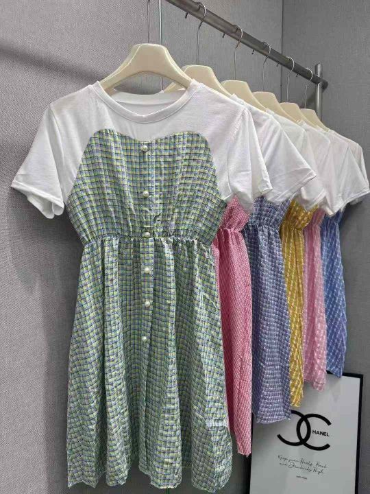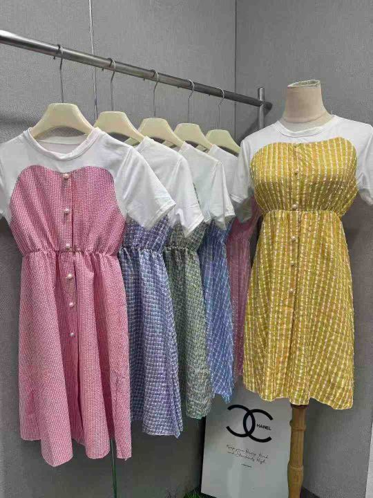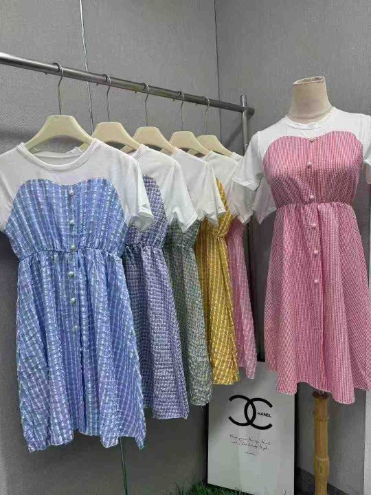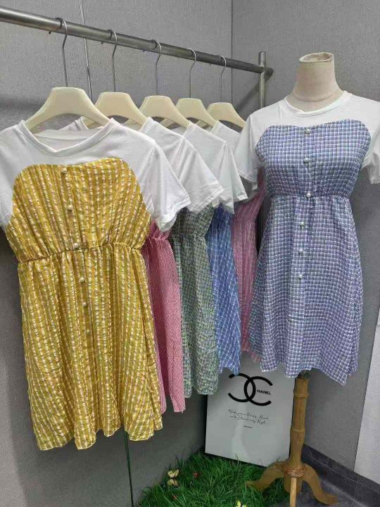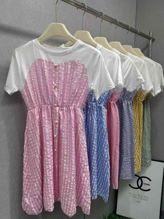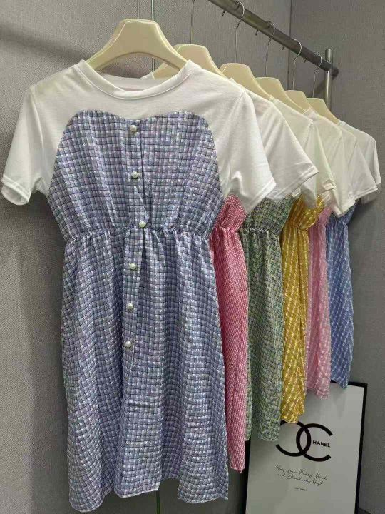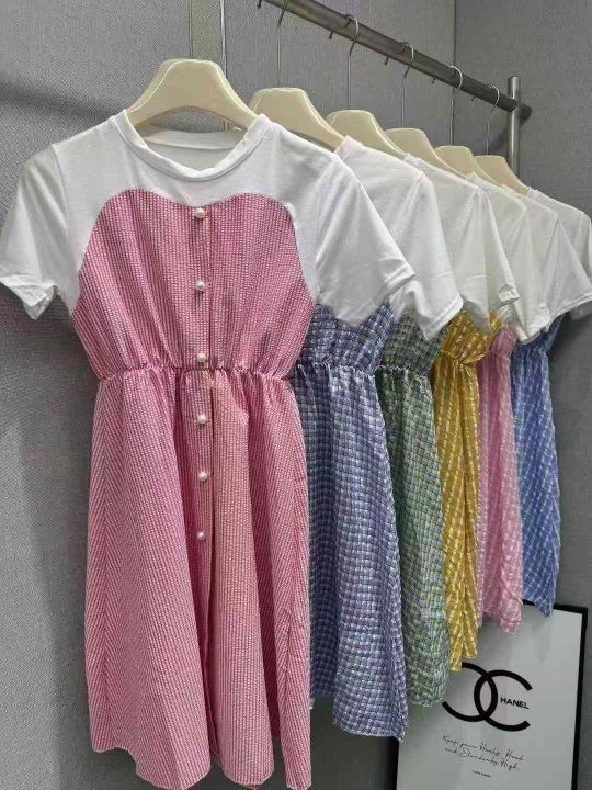 清1050条,学院风假两件拼接格子连衣裙女夏2025新款宽松休闲显瘦少女生裙子,茶歇法式格子撞色拼接减龄收腰气质连衣裙,均码,可清可分。