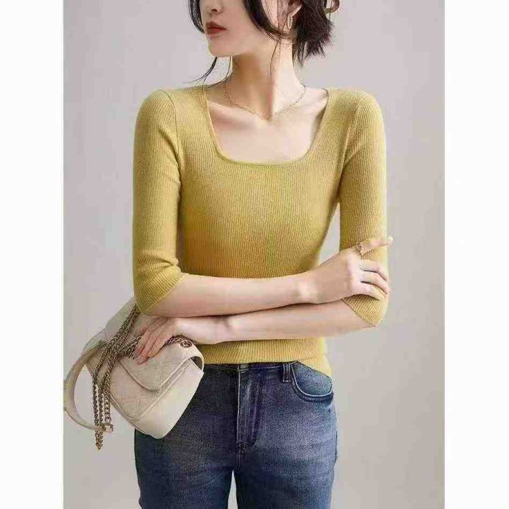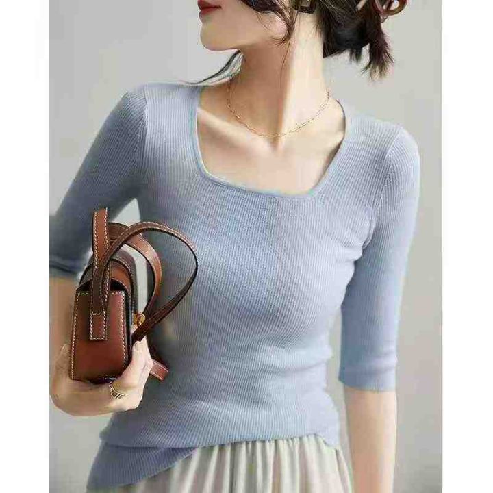 夏季新款高弹力修身显瘦冰丝曲珠针织小衫,独立包装,...