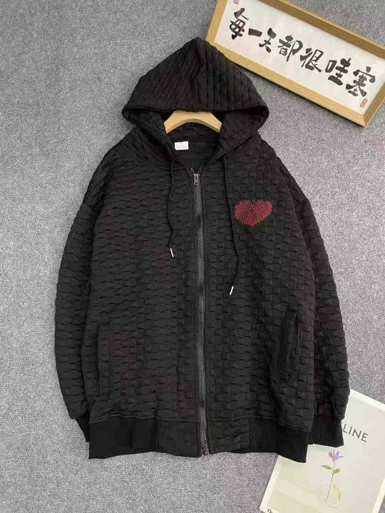 情侣款华夫格连帽外套104件13.8,前后图案刺绣,有口...