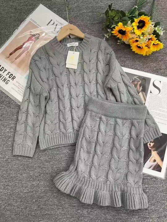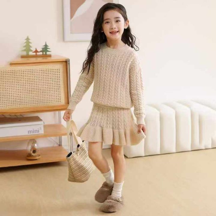 秋冬新款韩版童装麻花纹加厚粗针圆领套头毛衣+麻花纹加厚粗针荷叶边半身毛衣裙2件套,独立包装带吊牌,码数110--150码(码数清单看图)187套,全清9.9元超低价秒杀!
