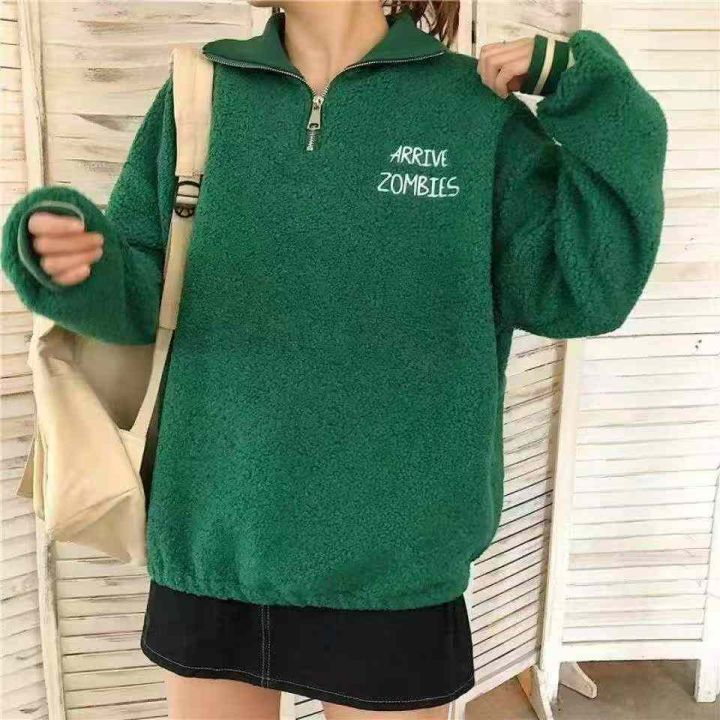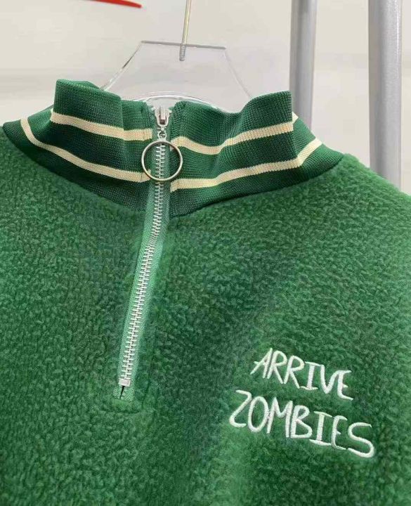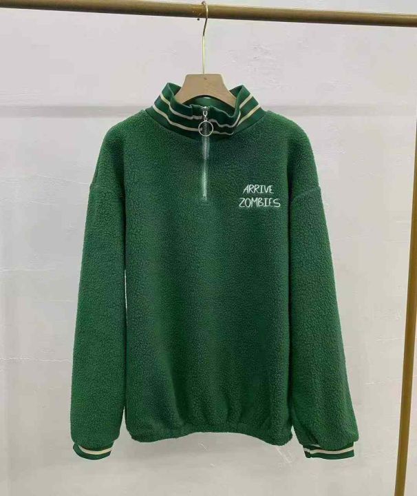 羊羔绒卫衣278件9.9,翻领带拉链字母刺绣,下摆松紧设...
