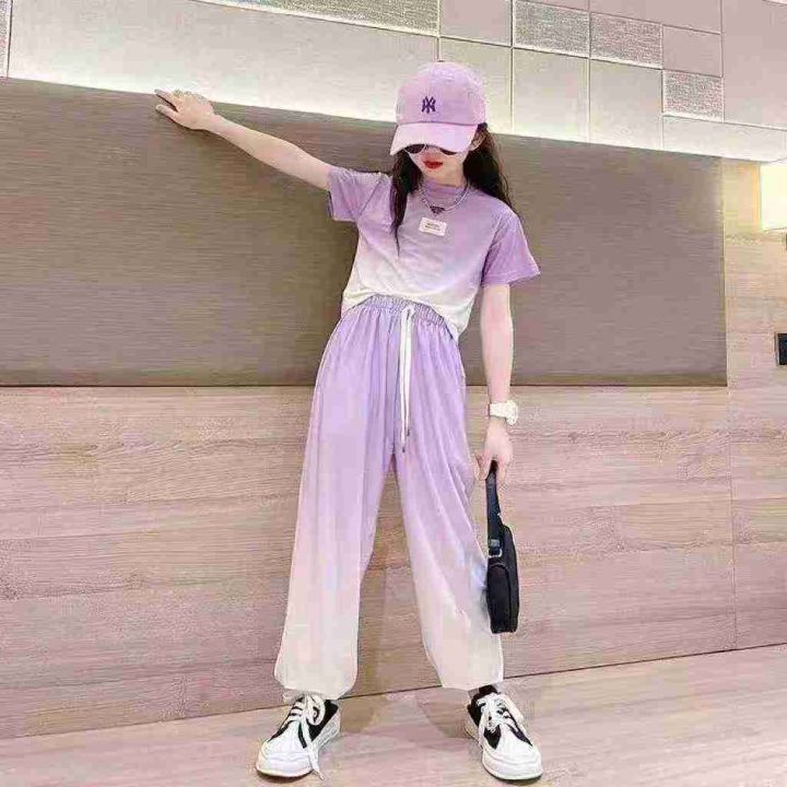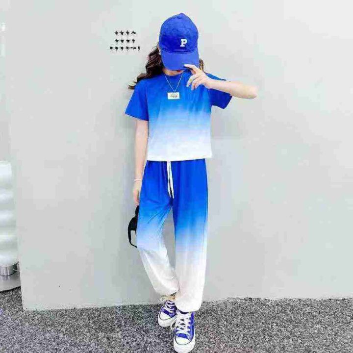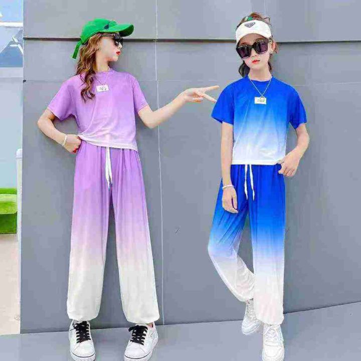 童装套装,夏季透气网眼速干渐变色束脚裤加圆领T恤运...