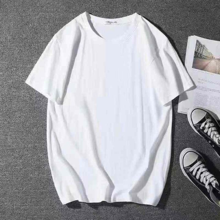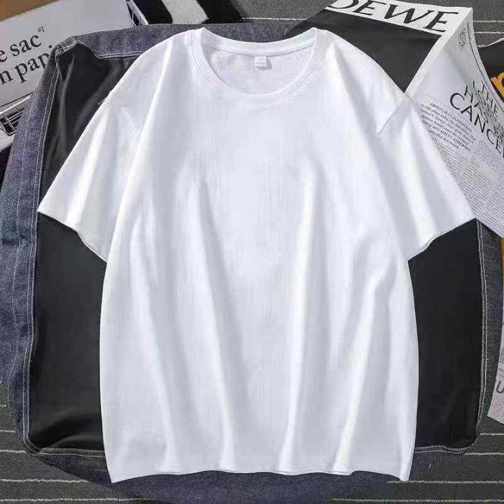 夏季纯棉白色圆领短袖T恤大码纯色短袖体恤