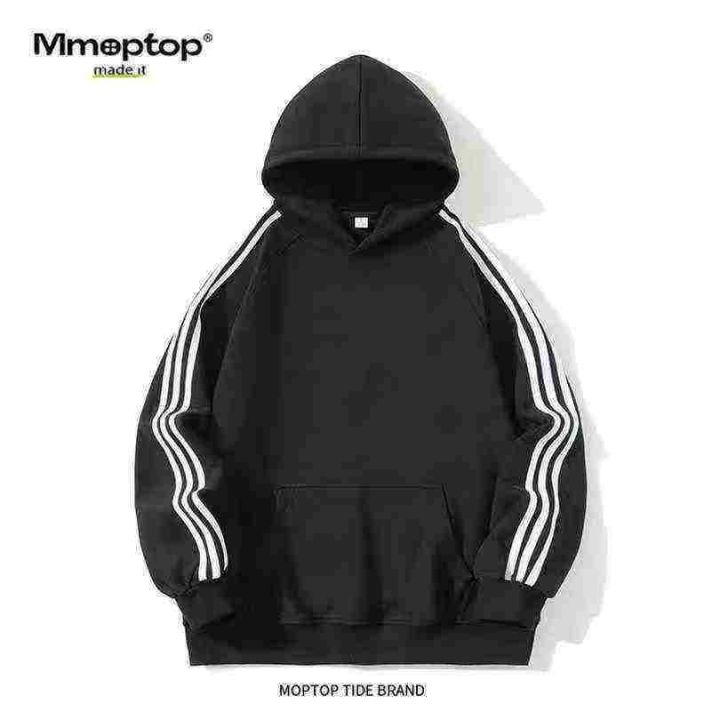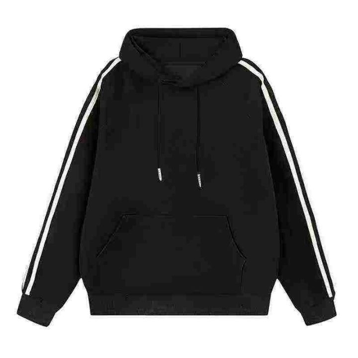 6.8清319件 美式复古三条杠加绒连帽卫衣男女秋冬季情侣撞色休闲帽衫外套 码数M--2XL
