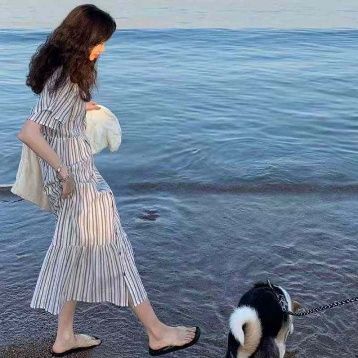 ⭐⭐120件法式复古条纹衬衫小众泡泡袖收腰显瘦鱼尾长裙连衣裙,码数SML,有内衬,品质好,独立包装带吊牌,全清13.8元!