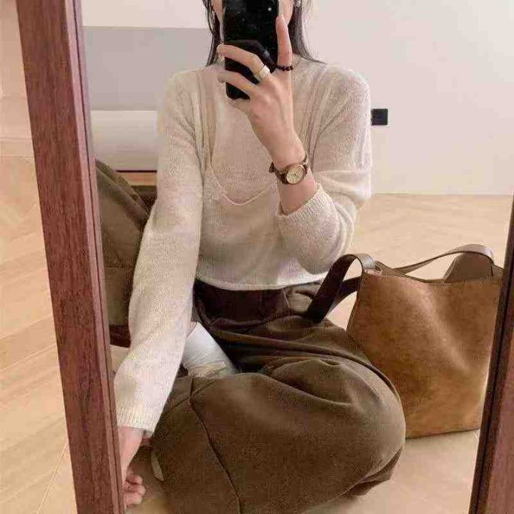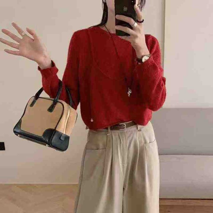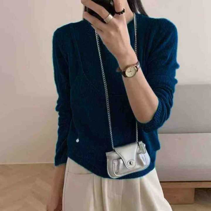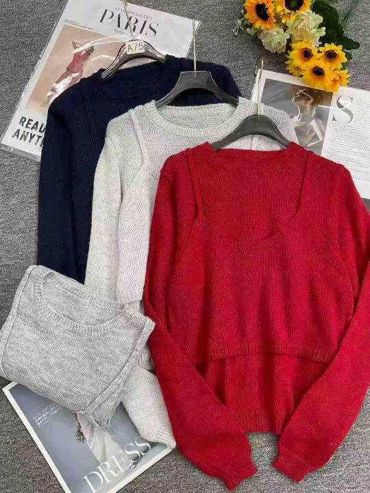 早秋新款假两件宽松慵懒风净版简约套头毛衣,独立包装...
