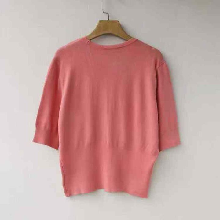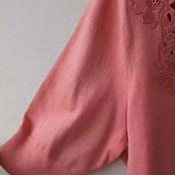 外贸原单春秋女士开衫提花西瓜红半袖中袖V领修身收腰百搭针织衫,高弹力,独立包装,Xs-L码,750件,全清3.8,分货➕0.5