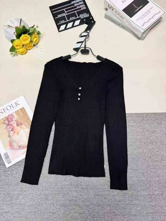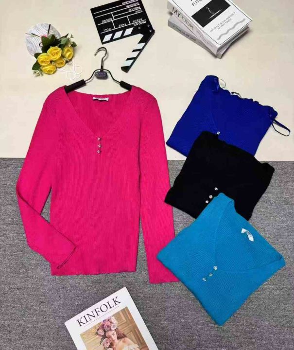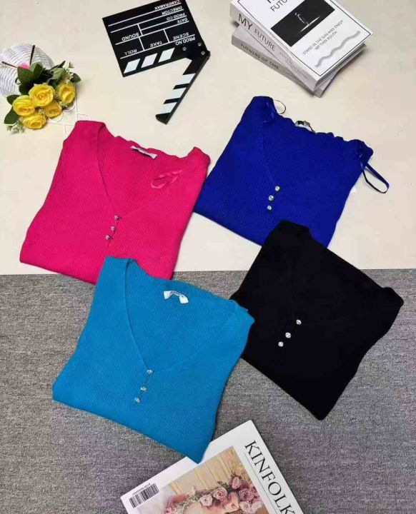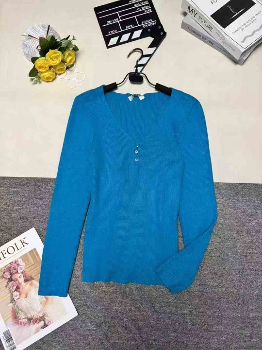 春秋修身纯色简约v领短款针织上衣,整款四色,高弹力,独立包装品质好,100件,清6.9