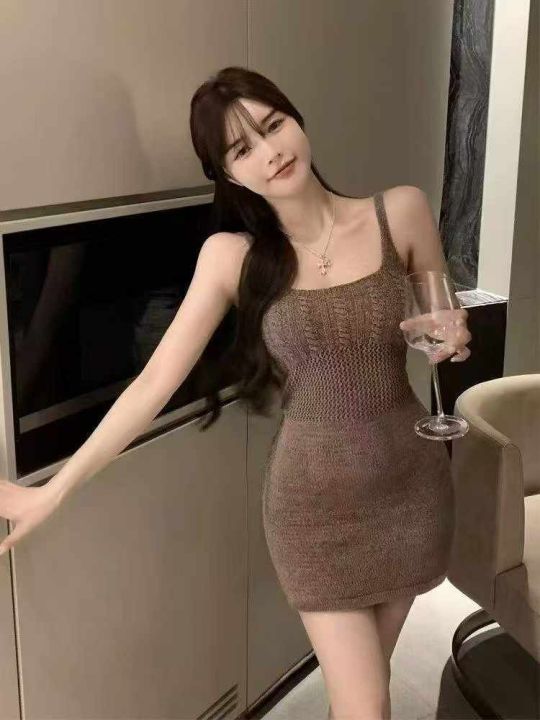 夏季新款纯欲风辣妹性感收腰显瘦仿雪尼尔针织包臀吊带连衣裙,独立包装,均码面料软糯舒适,215件,全清6.9元超低价秒杀!