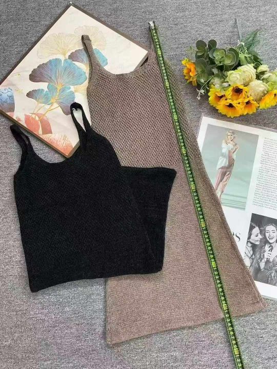 夏季新款纯欲风辣妹性感收腰显瘦仿雪尼尔针织包臀吊带...