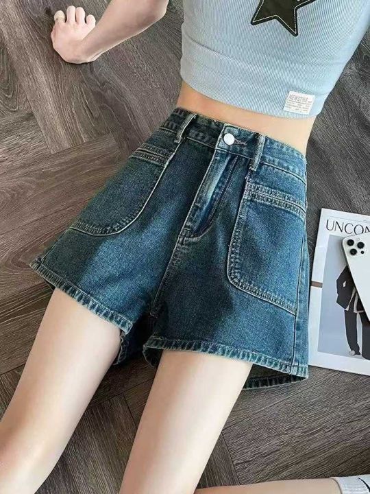 ☕️网红牛仔短裤200条全清9.9元,码数 S合适80-100斤,独立包装。新款夏季高腰工装显瘦外穿a字阔腿牛仔热裤